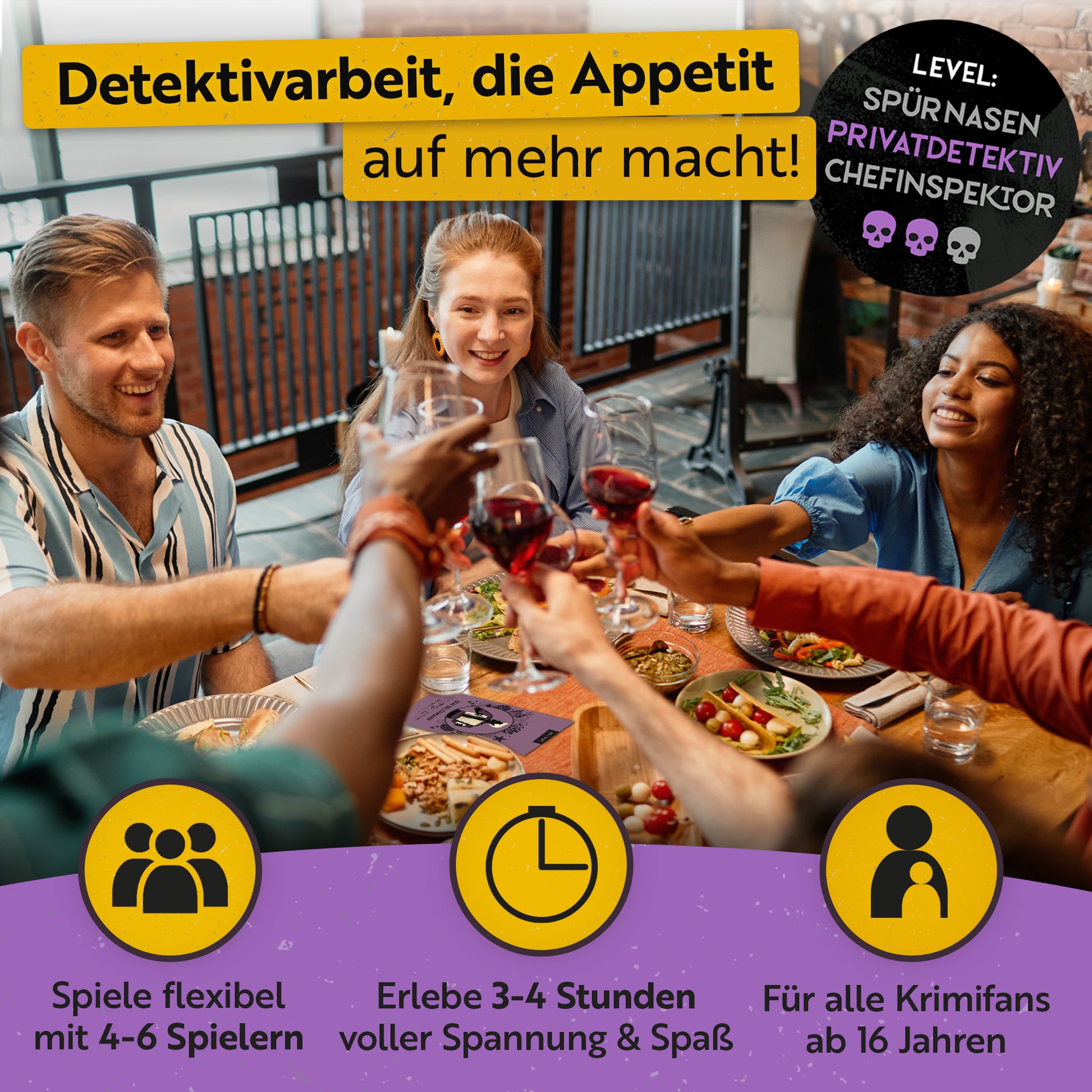 Mal in andere Rollen schlüpfen, sich cool verkleiden und dabei noch einen Mordfall lösen. Spiel, Spaß und Spannung. Mit diesem Spiel habt ihr bei uns genau ins Schwarze getroffen. Der Abend verging wie im Flug. Selten so gelacht und Spaß gehabt.